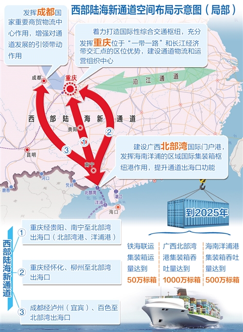 筹谋已久的“西部陆海新通道”构想终于落地了!据介绍,西部陆海新通道位于我国西部地区腹地,北接丝绸之路经济带,南连21世纪海上丝绸之路,协同衔接长江经济带,对于充分发挥西部地区连接“一带”和“一路”的纽带作用,推动区域经济高质量发展,具有重大现实意义和深远历史意义——
