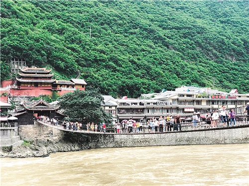 “往来人渡镜中梯,上下影摇波底月”,站在泸定桥售票处一侧的西端桥头处,有的游客饶有兴致地读起了这副对联,有的则在小声回忆红军当年飞夺泸定桥的惊险。