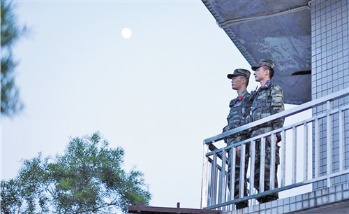 9月11日,临近中秋佳节,哨兵在哨位上执勤,观察着海面情况,默默守护万家团圆。廖 键摄(中经视觉)