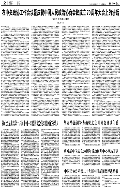 在中央政协工作会议暨庆祝中国人民政治协商会议成立70周年大会上的讲话