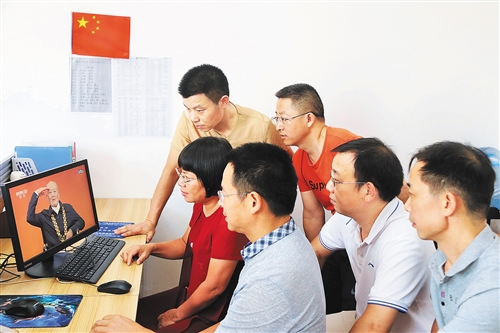 9月29日上午,江西省新余市渝水区通洲办事处干部群众在收看国家勋章和国家荣誉称号颁授仪式直播。 廖海金摄(中经视觉)