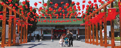 ▶江西省南昌市东湖区滕王阁景区国旗招展,游人赏景。 邓 鑫摄(中经视觉)