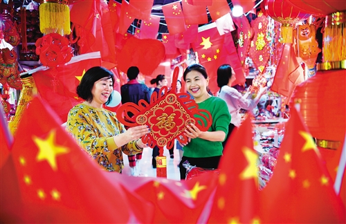 ▼河北省保定市莲池区西高庄亨佰丽小商品批发城,顾客在选购节庆饰品。 田艳军摄(中经视觉)