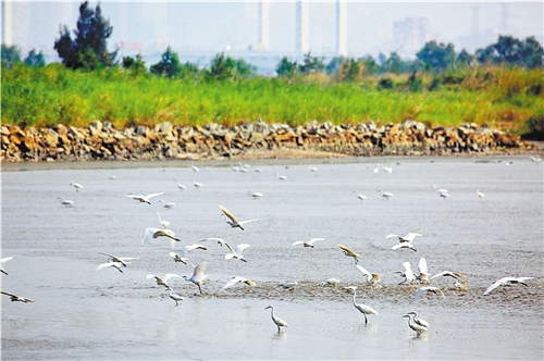 “据不完全统计,目前已有近20种鸟类在此栖息。”东莞滨海湾新区党工委委员、管委会副主任孙世宏说。