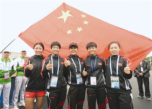 10月23日,第七届世界军人运动会结束了军事五项男、女个人全能和团体的比赛,“中国军团”揽获4枚金牌。其中,卢嫔嫔不仅获得女子个人全能冠军,还以个人总分5627.2的骄人成绩,成为世界军事五项史上女子破5600分的第一人。图为军事五项部分队员和教练合影。