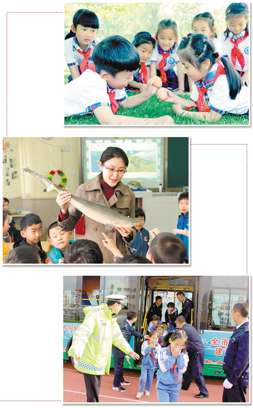 海洋生物专家专程来到青岛河西小学,给同学们现场讲解海洋生物的奥秘。