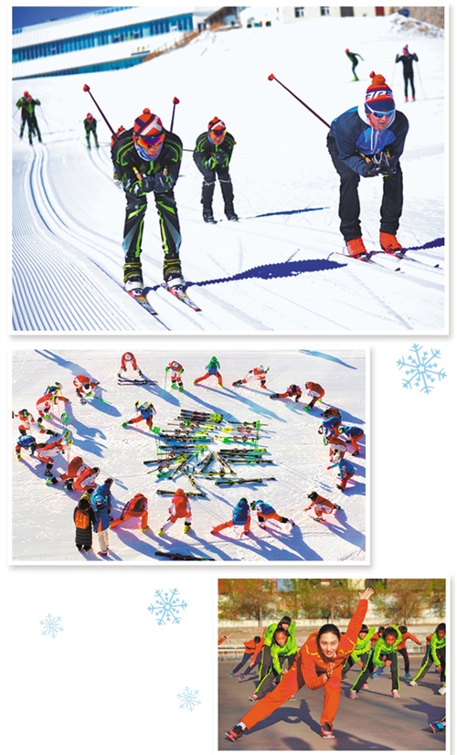 张家口市青少年冬季奥林匹克运动学校,是全国首所体教结合的冰雪学校。目前,该校在校学员826名,其中专业运动员127名,组建起了高山滑雪、越野滑雪、单板U型场地、单板平行大回转、坡面障碍技巧及大跳台、速度滑冰等6支专业队伍。教练员和学员在课余还致力推广冰雪运动走进社区、农村和中小学,推动“到2022年3亿人参与冰雪运动”目标的实现,成为冰雪运动的“助推剂”和“播种机”。图为张家口市青少年冬季奥林匹克运动学校学员在崇礼雪场进行训练。