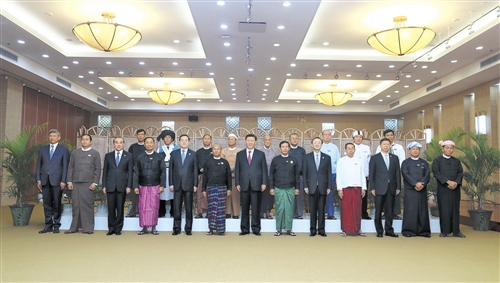 当地时间1月17日晚,国家主席习近平在内比都同缅甸主要政党领导人集体合影留念。新华社记者 鞠 鹏摄