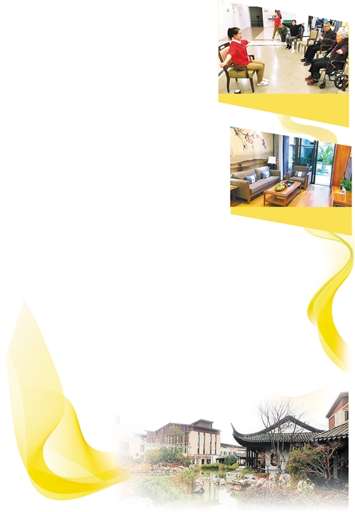 图(上)为养老社区工作人员在指导老人做健身操。本报记者 温济聪摄