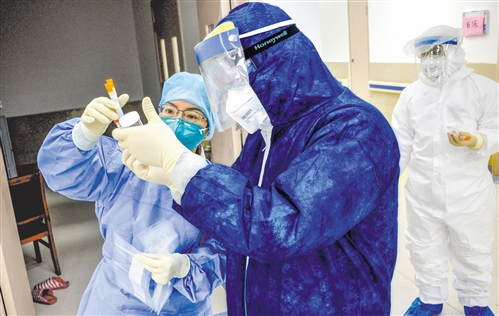 1月25日,安徽省合肥市庐江县一家医院新型冠状病毒感染的肺炎隔离病区,疾控中心医护人员正在现场作业。 面对异常严峻的新型冠状病毒感染的肺炎疫情,庐江县疾控中心全体医护人员主动放弃休假,奔赴一线,全身心投入到患者的先期处置、检测,确保患者得到有效治疗。
