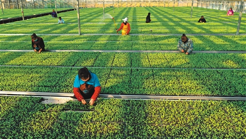 2月18日,贵州省铜仁市玉屏侗族自治县茅坡村村民在生菜育苗大棚里劳作。为保障春耕备耕顺利进行,该县一手抓疫情防控,一手抓春耕备耕,加强对种子、肥料、农膜等农资供需监测,做好产销对接和余缺调剂工作,保障种子、化肥等农资供应,抓好农业生产。