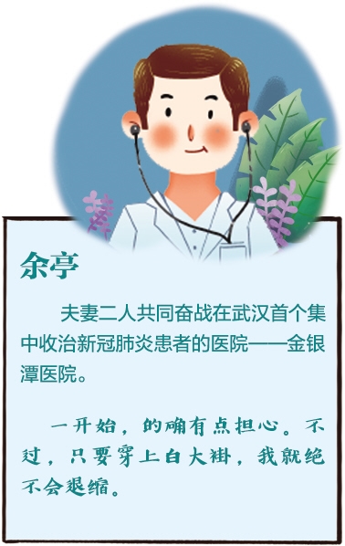 “一开始,的确有点担心。不过,只要穿上白大褂,我就绝不会退缩。”武汉市金银潭医院结核科主治医师余亭说。