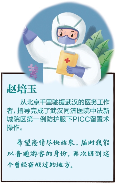 “武汉是个美丽的城市。希望疫情尽快结束,届时我能以普通游客的身份,再次回到这个曾经奋战过的地方,在开满樱花的武汉街头,吃碗香喷喷的热干面。”赵培玉说。