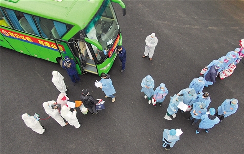 3月2日,武汉体育中心方舱医院164名患者治愈出院,迎来武汉体育中心方舱医院运行以来出院人数最高的一天。截至3月2日18时,武汉体育中心方舱医院累计收治1056人,累计出舱596人。 季春红摄(中经视觉)