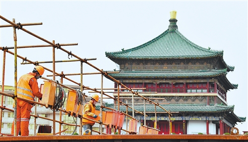 3月9日,中铁一局建安公司施工人员在西安地铁六号线钟楼站项目施工现场工作。近日,陕西西安地铁施工项目在做好疫情防控的同时,有序复工建设。