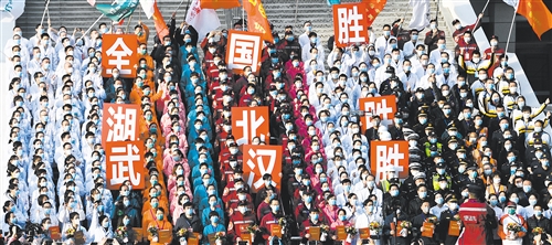 党中央把武汉和湖北的疫情防控作为重中之重,举全国之力予以支援,组织29个省区市和新疆生产建设兵团、军队等调派330多支医疗队、4万多名医护人员驰援,迅速开设火神山、雷神山等集中收治医院和方舱医院,千方百计增加床位供给,优先保障武汉和湖北需要的医用物资,并组织19个省份对口支援。