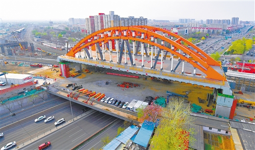 4月9日,跨越京沪铁路和北京西四环路的北京丰台特大桥六线简支钢箱拱桥落梁完成,标志着由中铁六局承建施工的丰台火车站改建配套控制性工程——全国首座六线简支钢箱拱桥顺利完工,为丰台站改建工程后续施工奠定了坚实基础。