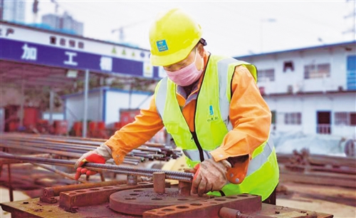 中建路桥集团工作人员正在为山东省济宁市太白湖EPC项目加工钢筋。近年来,中建路桥集团积极履行央企社会责任,助力经济社会全面发展。
