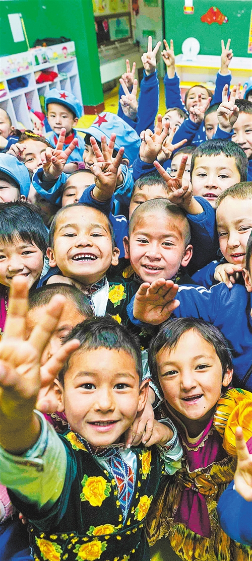 图② 新疆和田地区于田县先拜巴扎镇良种场村的孩子们在一起玩耍。