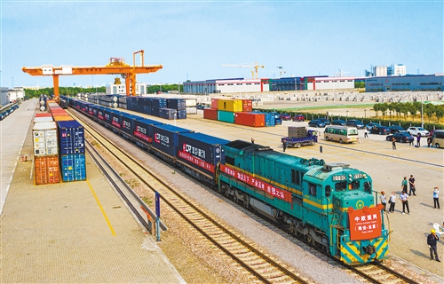 5月26日,一列满载货物的中欧(亚)班列缓缓驶出江苏海安物流基地,向越南河内进发,这是长三角地区首次开行至东盟十国的国际货运班列。