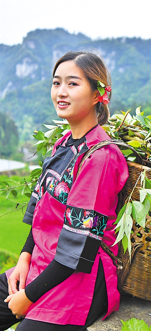 图① 返乡创业大学生施林娇在十八洞村留影,她通过直播平台帮助乡亲们的特色产品拓宽销路。 新华社记者 薛宇舸摄