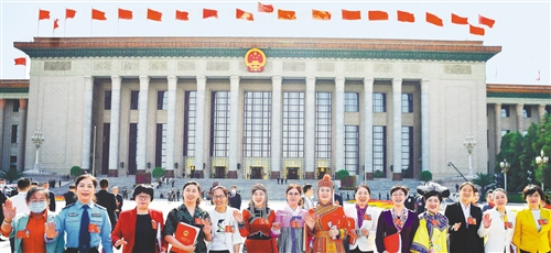 图① 5月28日下午,十三届全国人大三次会议闭幕,出席盛会的全国人大代表步出人民大会堂,踏上新征程。