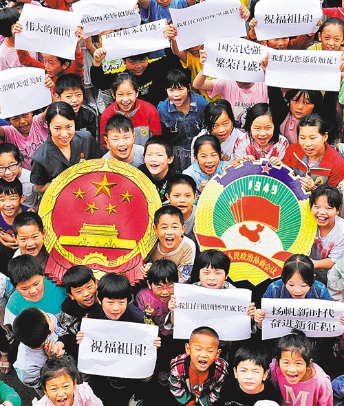 图④ 江西宜春万载县鹅峰乡东田小学通过心愿寄语、与国徽合个影等形式,让学生们了解更多全国两会的基本知识,引导学生关心国家大事,努力学习。