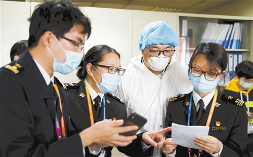 上海浦东国际机场海关旅检一科的王姝婷是海关一名流调医生,从春节起,她和同事们就在国门一线抗“疫”了。“你从哪儿来?”“你到哪儿去?”“你是干什么的?”他们每天不知要问多少遍。