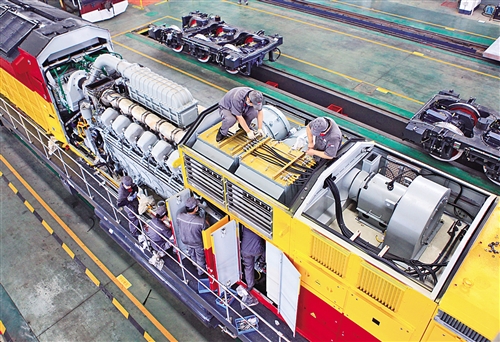 6月1日,位于江苏常州经开区的中车戚墅堰机车有限公司,工人在进行总装及试车工作。在疫情防控常态化形势下,中车戚墅堰机车有限公司落实“保市场主体”任务,自行设计生产的24台4400马力和谐N5B型调车内燃机车将于近期陆续完成交付。