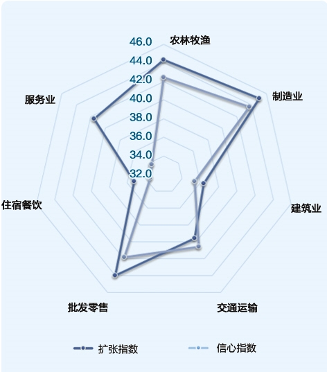 7月小微企业扩张指数为42.9,上升0.1个点。分行业来看,除建筑业下降外,其他行业的小微企业扩张指数均有所上升。其中,农林牧渔业小微企业扩张指数为44.3,上升0.2个点,其新增投资需求上升0.7个点;制造业小微企业扩张指数为45.1,上升0.1个点,其新增投资需求上升0.3个点,用工需求上升0.1个点;交通运输业小微企业扩张指数为39.6,上升0.1个点,其新增投资需求上升0.3个点;批发零售业小微企业扩张指数为44.0,上升0.2个点,其新增投资需求上升0.1个点,用工需求上升0.3个点;住宿餐饮业小微企业扩张指数为35.3,上升0.3个点,其新增投资需求上升0.4个点,用工需求上升0.2个点;服务业小微企业扩张指数为41.6,上升0.2个点,其新增投资需求上升0.4个点,用工需求上升0.3个点。