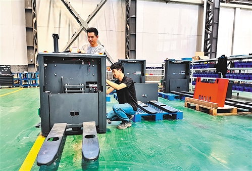 在位于安徽省安庆迎江经济开发区的安徽坤力智能装备有限公司生产车间,工人们正在紧张地安装调试智能化无人叉车。安徽坤力智能装备有限公司总经理储庆说,2019年12月企业刚刚搬迁入园,为了转型升级,扩大产能,急需解决融资问题。开发区管委会了解情况后,立即帮助企业协调解决。今年5月,企业已顺利投产。