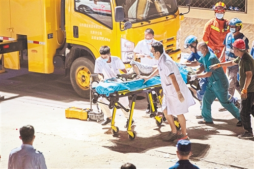 记者从山西省临汾市襄汾县“8·29”重大坍塌事故现场抢险救援组获悉,截至8月30日3时52分,临汾市襄汾县陶寺乡陈庄村聚仙饭店坍塌事故抢险救援工作结束,共搜救出57名被埋人员,其中29人遇难,7人重伤,21人轻伤。重伤者均得到有效救治,目前生命体征平稳,没有生命危险。抢险救援结束后,现场立即成立事故调查组,开展事故调查工作。这是8月29日拍摄的事故救援现场。
