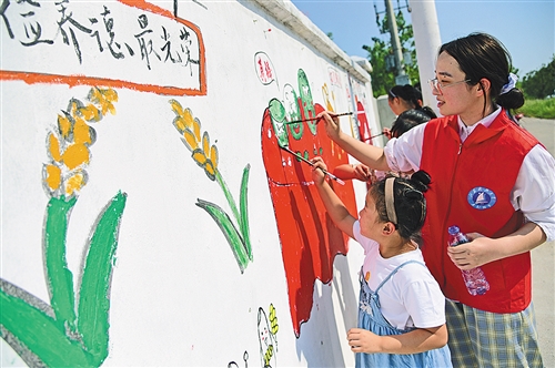 9月5日,江苏科技大学志愿者和小朋友一起进行“节俭养德 光盘行动”主题墙绘。当日,镇江市金山街道太古山社区联合江苏科技大学志愿者开展“墙绘倡节俭 光盘伴我行”活动,表达厉行节约从我做起的决心。