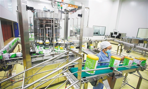 朱银宏介绍,该生产线实现机器人自动分拣、全程电子化查询和识别,全程无人、无纸化作业,具有智能化、可视化、柔性化等特点,产品从原料、生产、储运到销售全程可追溯,是国内领先的数字化营养健康食品工厂。