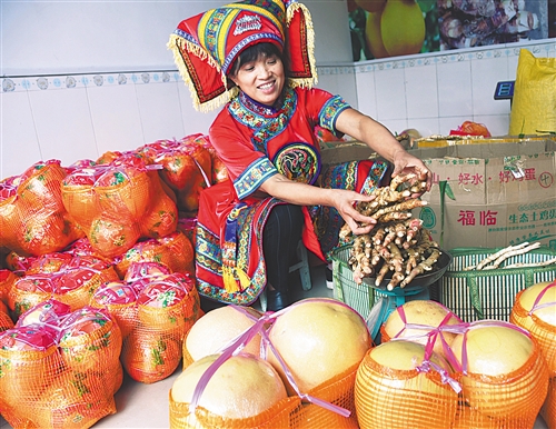 9月28日,湖南省永州市江永县潇浦镇电商街,商户将生姜、蜜柚、蜜橘等农产品包装好发往北京、上海等地。 田如瑞摄(中经视觉)