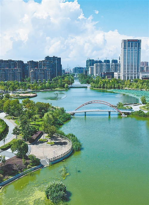 鸟瞰蓝天白云下的江苏省如皋市龙游河,碧水如镜,岸畔树木葱郁,风景如画。 近年来,如皋市大力推进水生态文明建设,围绕龙游河实施生态修复综合整治工程,通过源头治理、水系沟通、生态修复、水岸同治等一系列措施,将龙游河打造成“河畅、水清、岸绿、景美”的生态景观河,成为市民和游客休闲的天然氧吧。 吴树建摄(中经视觉)
