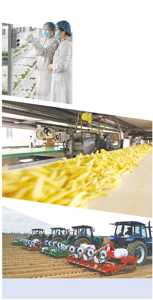 “马铃薯种植规模虽然扩大了,但国内深加工严重滞后,比例还不足总量的18%。10年前,冷冻薯条生产在国内市场占比还不到5%,仅此一项,每年就要进口冷冻薯条10万吨以上。”王登社认为,应当开拓马铃薯精深加工,延伸产业链条。于是在2011年,雪川农业决定将种业积累起来的所有资金投入精深加工领域,规划建设一条年产2万吨薯条的生产线。但在此之前,国内既缺乏资金,更没有加工设备。几经周折,雪川农业才从荷兰采购了设备,成为国内第一家大规模生产薯条的企业,实现当年投产当年盈利。