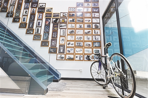 在对原有工业文化遗址进行保护的前提下,天津飞鸽自行车厂的旧厂房被改造成集科技研发、文创办公等于一体的综合性产业园,目前已入驻产品设计、文化娱乐、电子科技等企业25家。图为产业园内一家企业内景。 赵子硕摄(新华社发)