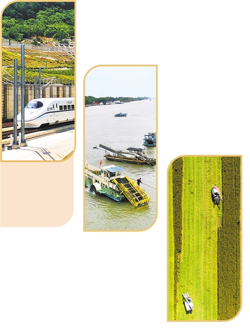 右图 10月15日,苏浙沪三地的保洁船在太浦河水域联合清理水面浮游植物。来自苏州市吴江区、上海市青浦区和嘉兴市嘉善县的三位河长在位于长三角生态绿色一体化发展示范区的苏浙沪交界水域太浦河流域开展联合巡河活动。