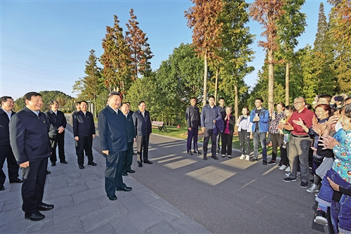正在江边休闲散步的市民看到总书记来了,纷纷向总书记问好。习近平同大家亲切交流,对大家说,40多年前我来过五山地区,对这里壮阔江面的印象特别深刻。这次来,看到经过治理,曾经脏乱差的环境发生了沧桑巨变,成为人们流连忘返的滨江生态公园。大家生活在这样的城市里很幸福,幸福是你们共同奋斗、亲手创造出来的。习近平指出,城市是现代化的重要载体,也是人口最密集、污染排放最集中的地方。建设人与自然和谐共生的现代化,必须把保护城市生态环境摆在更加突出的位置,科学合理规划城市的生产空间、生活空间、生态空间,处理好城市生产生活和生态环境保护的关系,既提高经济发展质量,又提高人民生活品质。当前,境外疫情仍在蔓延,我国外防输入、内防反弹压力还很大。希望大家始终不放松疫情防控这根弦,继续落实各项常态化疫情防控措施,坚决防止疫情出现反复。