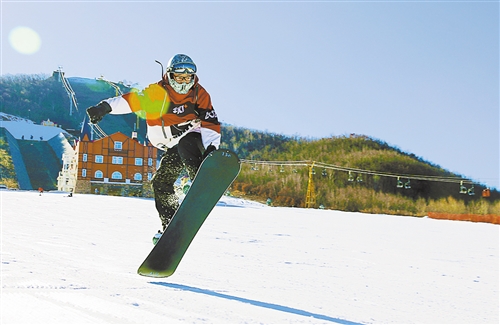 11月15日,滑雪爱好者在内蒙古扎兰屯金龙山滑雪场滑雪。当日,该滑雪场迎来了2020-2021雪季初级道“第一滑”,滑雪爱好者尽享冰雪运动乐趣。 韩 冷摄(中经视觉)