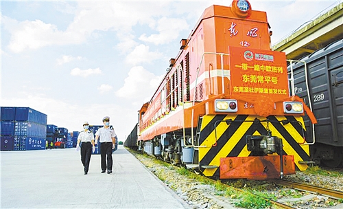 本报讯 记者郑杨报道:日前,首趟“东莞常平号”中欧班列在广东东莞常平镇常胜货运场成功发出,搭载44个40英尺集装箱的电器、电子产品、防疫用品、家具等货物,货值306万美元。该趟班列经新疆阿拉山口出境,途经哈萨克斯坦、俄罗斯、白俄罗斯、波兰等4个国家,到达德国杜伊斯堡。常平中欧班列开通后,黄埔海关监管的中欧班列每周将达4列,将为“世界工厂”东莞外贸稳增长发挥更大作用,为稳定全球产业链供应链提供更有力支撑。