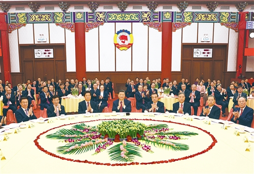 在京中共中央政治局委员、中央书记处书记,全国人大常委会、国务院部分领导同志,全国政协领导同志和曾任全国政协副主席的在京老同志出席茶话会。