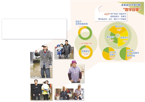 这40个农户分别来自记者采访走过的广东韶关市、陕西商洛市和安康市以及贵州省沿河、从江、榕江三个贫困县。需要说明的是,这40个农户都是记者在采访中了解的,“样本选择”没有经过“学术标准”考量,算不上社会学意义的调查。但是,这些随机遇到的农户也许更能反映出普通人生活的变化。让我们透过普通群众的日常,来感受脱贫攻坚带来的巨大变化。
