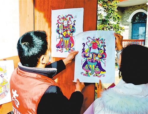 日前,该市文艺志愿者来到老河口市仙人渡镇李家染坊等特色小村,张贴老河口非遗传承木版年画、春联并挂起灯笼,给特殊的新春增添年味,也向群众普及传统文化知识和老河口非遗文化。他们还自制短视频,让浓浓的年味在网络上更广泛地分享。