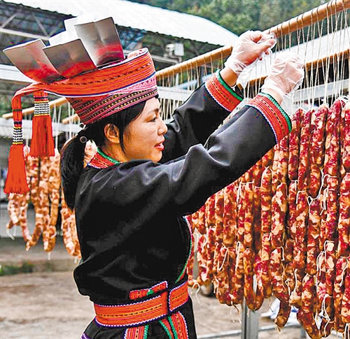 图③ 广西金秀瑶族自治县大岭村腊味飘香。