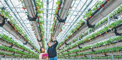 2月27日,广州市花都区赤坭镇草莓园,红彤彤的草莓吸引游客前来体验采摘乐趣。 邱新生摄 (中经视觉)