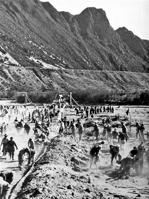 图② 67年前,筑路军民修建青藏公路时的场景。(青藏兵站部供图)