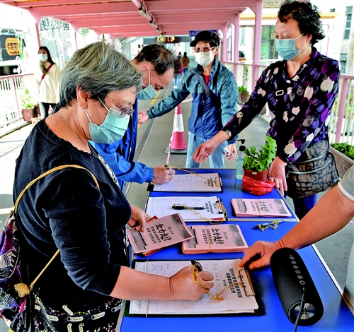 3月11日,香港各界发起系列活动支持全国人大完善香港选举制度的决定。这是香港市民在香港街头签名支持。新华社记者 卢炳辉摄