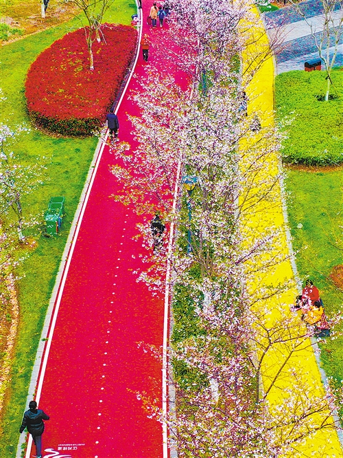3月21日,江西省南昌市赣东大堤风光带樱花绽放,春色尽收眼底。当地大力发展休闲旅游,吸引众多游客前来观光。 陈文萍摄(中经视觉)